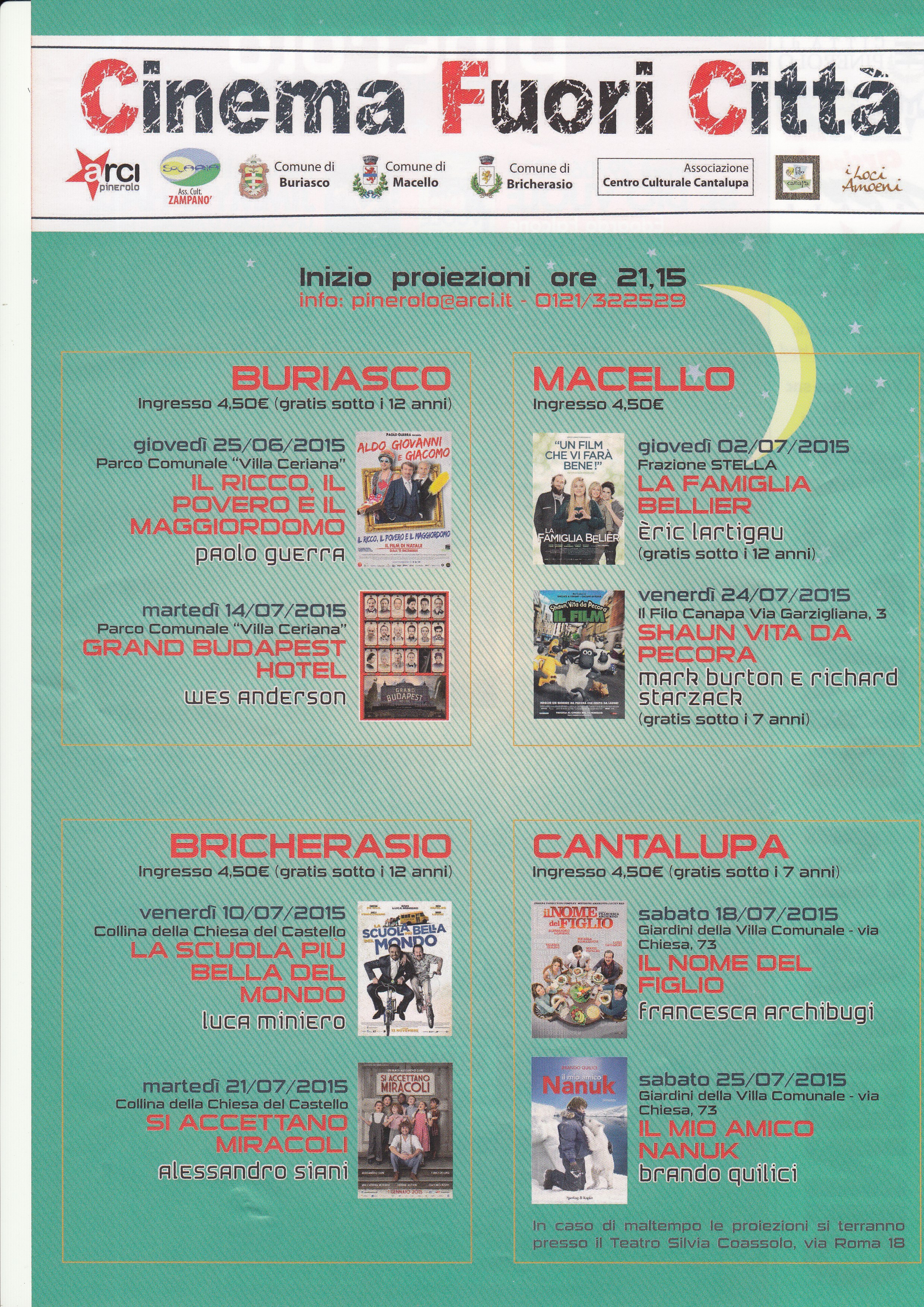 Il Comune, nell'ambito del circuito di cinema all'aperto "Cinema Fuori Città - Arcipelago Estate 2015", propone "La scuola più bella del mondo" di Luca Miniero con Christian De Sica, Rocco Papaleo e Angela Finocchiaro.