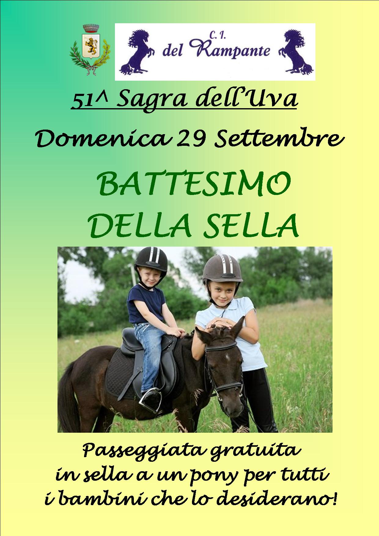 Domenica 29 settembre dalle ore 9 alle 18 lungo Via Vittorio Emanuele II, INTRATTENIMENTO PER BAMBINI E GIOCHI DA TAVOLO per giovani e famiglie, a cura dell’Associazione ludico-culturale “Dimensione Arcana" e per tutti i bambini che lo desiderano, Battesimo della sella, passeggiata gratuita in sella ad un pony