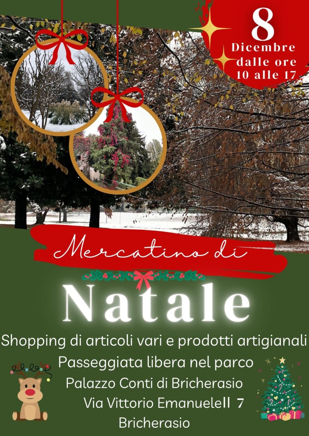 Il Palazzo dei Conti di Bricherasio, in Via Vittorio Emmanuele II n. 7, ospita domenica 8 dicembre la prime edizione del Mercatino di Natale nella suggestiva location del parco della dimora storica. Dalle ore 10 alle 17 si può fare shopping di articoli vari e prodotti artigianali e passeggiare liberamente nel giardino.