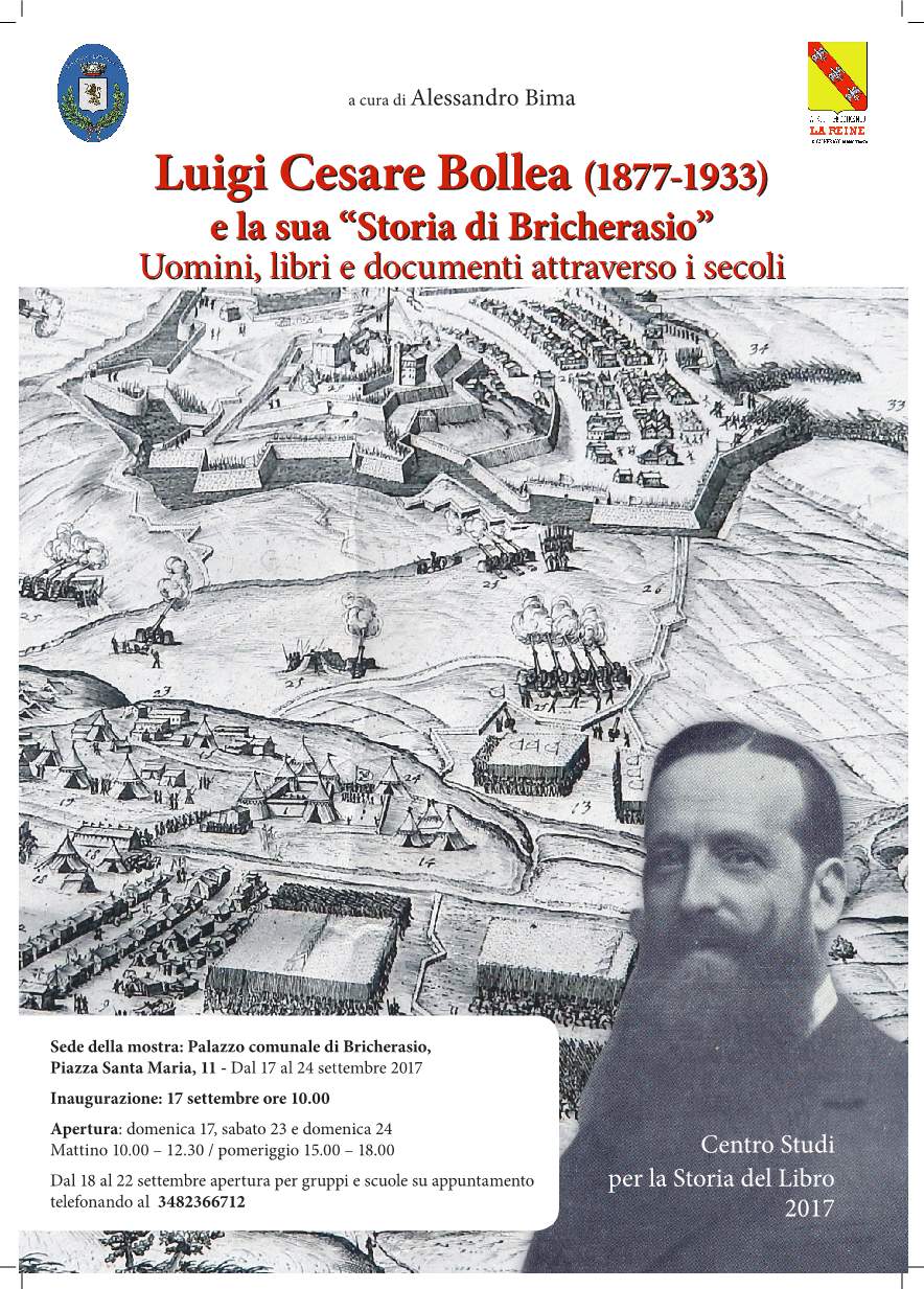 La mostra, partendo dalla “Storia di Bricherasio” di Luigi Cesare Bollea, opera fondamentale per la storia di questo paese, intende offrire al visitatore un panorama della ricca produzione di scritti storici del Bollea. L’interesse di storico del Bollea per Bricherasio iniziò agli albori del ‘900 con varie monografie dedicate all’assedio del 1594 e alla rivoluzione di fine ‘700 e perdurò per tutta la sua vita culminando nei due volumi, la “Storia” e il “Cartario” di Bricherasio pubblicati nel 1928, che Narciso Nada definì: “il suo lavoro più impegnativo sia per la vastità della ricerca archivistica, sia per la complessità del quadro storico che ne emerge”. Professore nei licei in varie parti d’Italia e infine docente all’Accademia Albertina di Torino, durante l’estate soggiornava a Bricherasio dove vi erano le radici famigliari, infatti la madre, Maurizia Molineri, era di famiglia bricherasiese. Le centinaia di scritti del Bollea non sono però limitati all’ambito strettamente locale: spaziano da lavori di storia medioevale a importanti contributi sulla storia risorgimentale e alla storia dell’arte. Gli uni e gli altri saranno illustrati con documenti originali, libri, incisioni e fotografie. Vengono inoltre ricordati altri storici o scrittori bricherasiesi come l’illuminista Giovanni Francesco Maria Cacherano dei conti di Bricherasio (1736-1812), il rivoluzionario Ignazio Belmondo (1745-1802), il cui padre Giuseppe è autore di un ‘Istruzione per l’esercizio degli uffizi del notaio, Torino, 1777-79, e i fratelli Albino e Pietro Caffaro. La mostra sarà allestita presso la sala Giunta del palazzo comunale e rientra nei festeggiamenti della 49^ Sagra dell’Uva di Bricherasio. Inaugurazione domenica 17/9 alle ore 10.00; apertura domenica 17, sabato 23 e domenica 24/9 ore 10-12.30 e 15-18 oppure su appuntamento al n° 348-2366712.