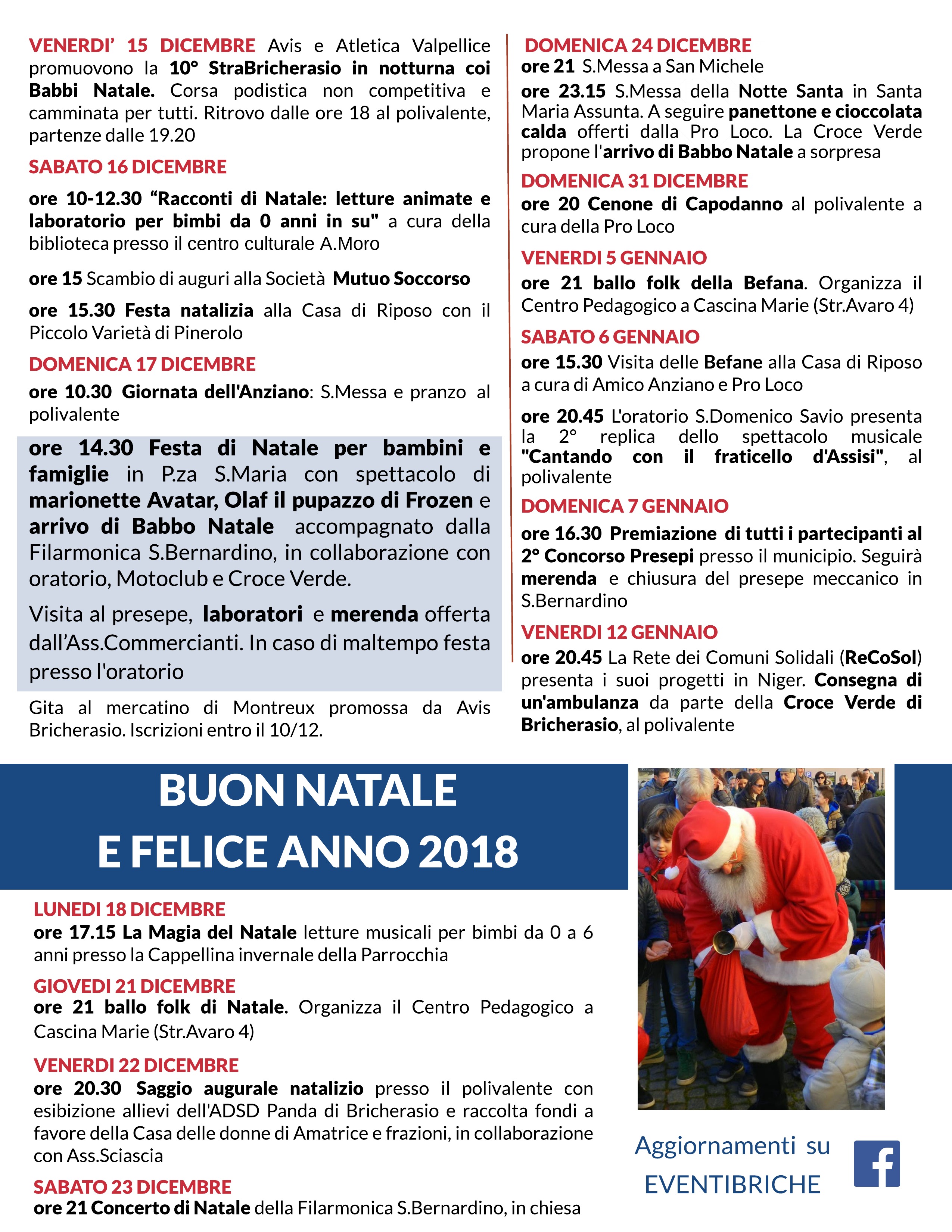 Iniziative del periodo delle feste natalizie 2017-2018 promosse dal Comune e dalle associazioni bricherasiesi.
