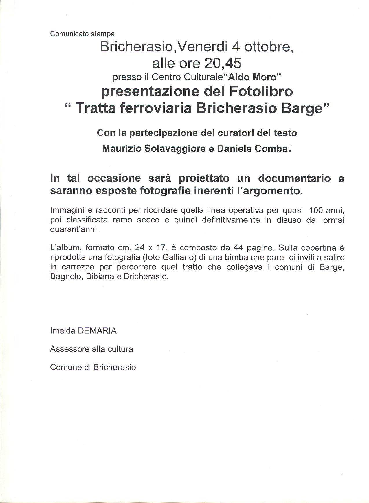 Presentazione del fotolibro tratta ferroviaria Bricherasio-Barge