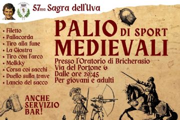 Il gruppo giovani dell'oratorio di Bricherasio presenta un PALIO di SPORT MEDIEVALI per martedì 23 e giovedì 25 settembre dalle ore 20,45 in Oratorio,...
