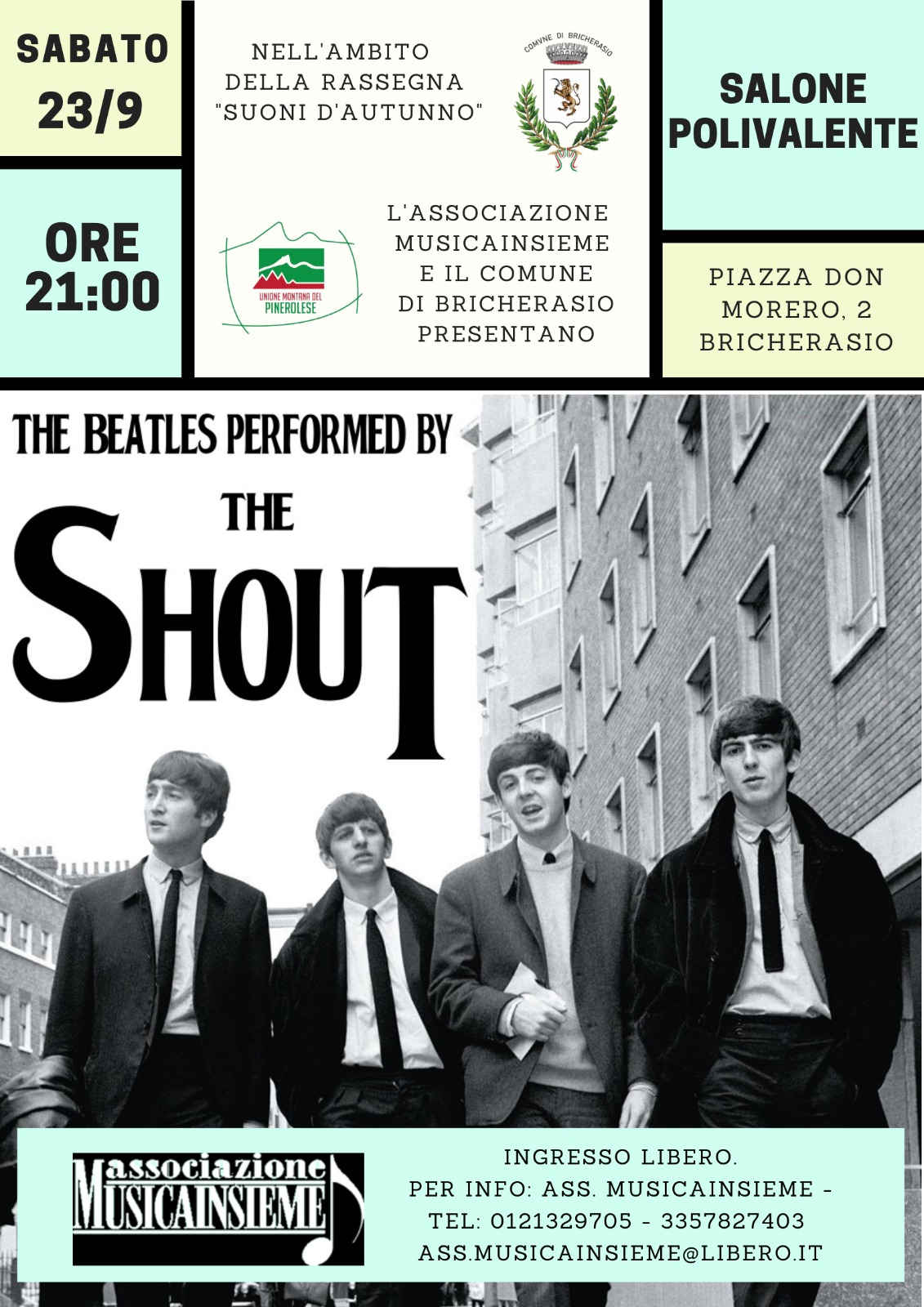 Sabato 23 settembre, alle ore 20.45: “The Shout- Beatles Tribute”, concerto nell’ambito della rassegna intercomunale Suoni d'Autunno, in collaborazione con l’Associazione Musicainsieme, al Salone Polivalente