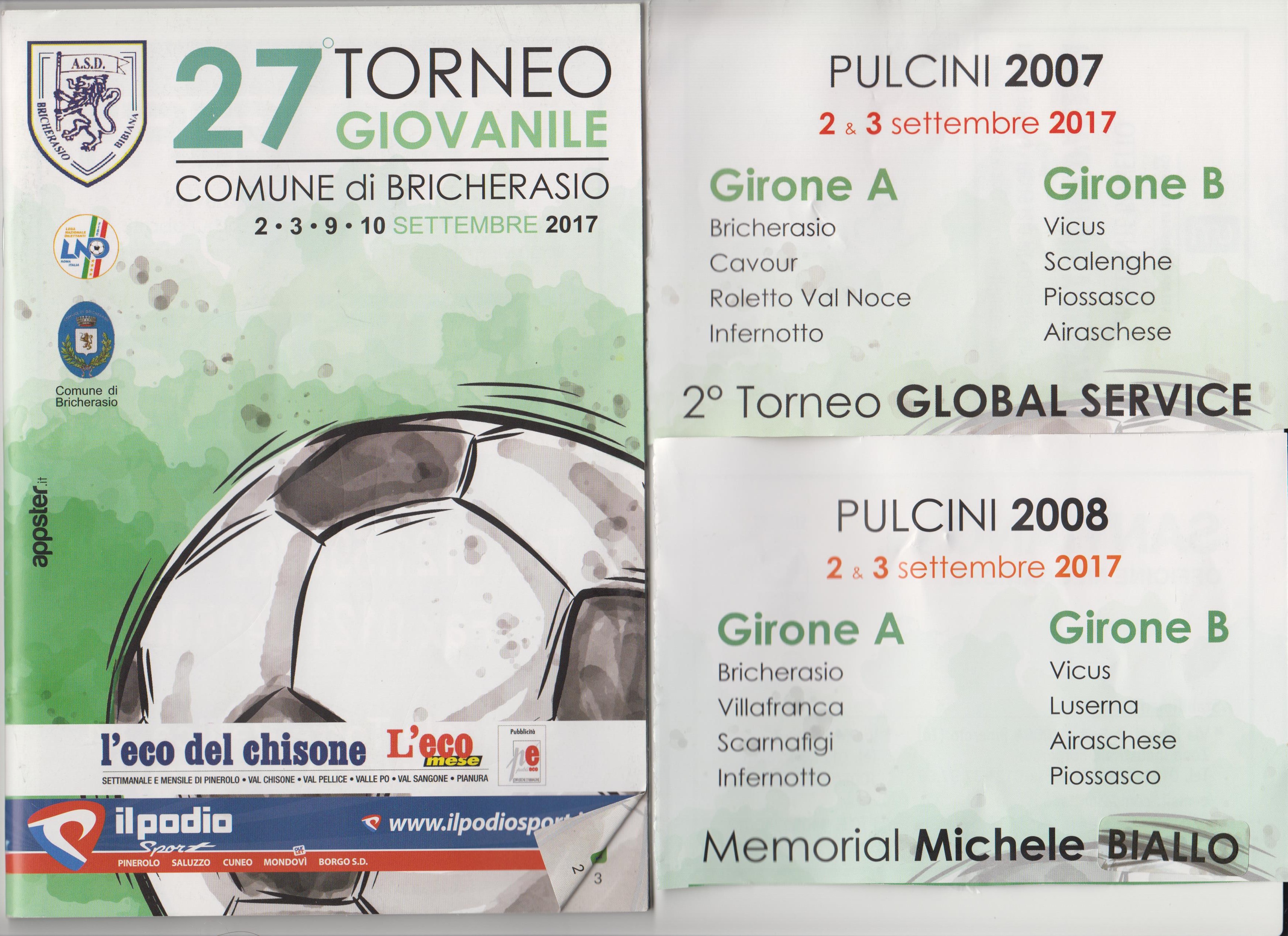 Il torneo giovanile di calcio “Comune di Bricherasio” in programma sabato 2 e domenica 3 settembre al campo sportivo “Calleri di Sala” di Bricherasio, per le categorie Pulcini 2007 e Pulcini 2008 taglia il prestigioso traguardo delle 27 edizioni. Si vedranno le emozioni negli occhi dei giovani calciatori, seguiti dal pubblico delle grandi occasioni, dai propri genitori e parenti, ci sarà la spensieratezza che si prova correndo dietro un pallone, facendo un gol oppure un tackle. La società Bricherasio/Bibiana, negli ultimi anni grazie all’impegno del direttore generale Andrea Gamba e dei suoi fidati collaboratori, propone il tradizionale ritrovo di giovani calciatori e calciatrici iniziato nel 1991 e inserisce l’evento sportivo nel programma della 49° Sagra dell’Uva. La macchina organizzativa lavora a pieno regime per completare gli ultimi aspetti logistici e garantire la migliore accoglienza possibile alle società partecipanti alla kermesse sportiva cresciuta qualitativamente di anno in anno. Nei Pulcini 2008 a 7 calciatori le otto squadre partecipanti suddivise in due gironi giocano per il "1° memorial Michele Biallo", il piccolo angelo di Bricherasio che neanche un mese dopo la nascita perse la vita nel 2015. Nel girone A ci sono con la squadra ospitante del Bricherasio/Bibiana allenata da Roberto Perro, Infernotto, Villafranca e Scarnafigi, e nel girone B giocano Piossasco, Lusena, Airaschese e Vicus. Due gironi da quattro compongono anche il tabellone della categoria Pulcini 2007 a 7 giocatori. Si contendono il 2° trofeo "Global Service" i padroni di casa del Bricherasio/Bibiana allenati da tre calciatori della prima squadra: Rocco Corrado, Giuseppe Pecora e Gigi Solito, con Infernotto, Roletto Val Noce e Cavour nel primo girone. Nell’altro scendono in campo Piossasco, Scalenghe, Airaschese e Vicus. Identica la formula dei due tornei. Dopo i quadrangolari all’italiana le prime due di ogni girone si sfideranno in altro girone all’italiana a quattro squadre mentre le terze e quarte classificate daranno il via ad un girone di consolazione. Fischio d’inizio delle partite alle ore 15. Inoltre il Bricherasio Bibiana nel 2018 raggiunge un prestigioso traguardo. La gloriosa Polisportiva Virtus Bricherasio, da qualche anno diventata Società Sportiva Dilettantistica Bricherasio Bibiana, spegne cinquanta candeline e sono iniziati i preparativi per una grande festa che si terrà il prossimo anno agli impianti sportivi “Ammiraglio Calleri di Sala”.