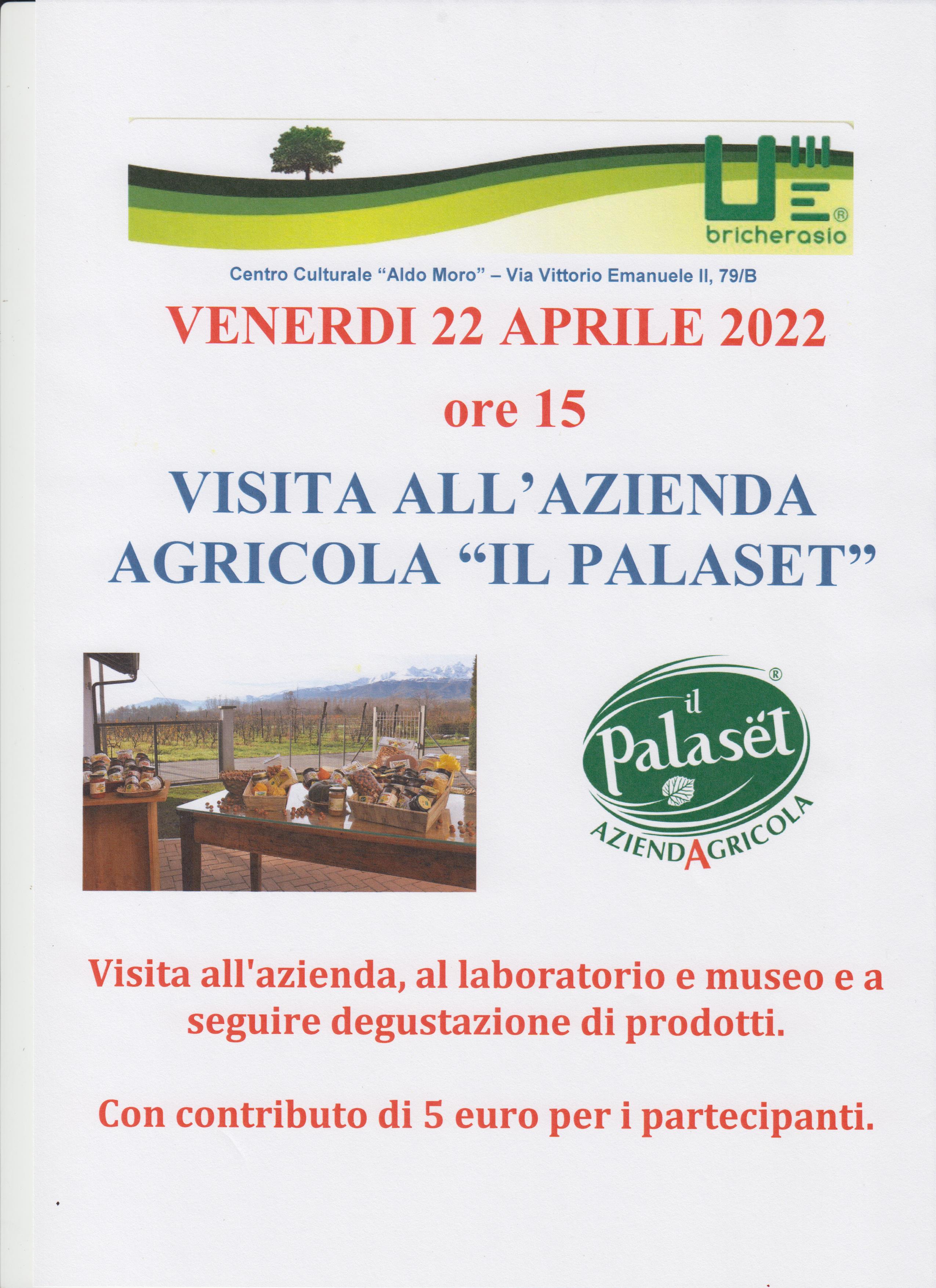L'Unitre di Bricherasio organizza per venerdì 22 aprile la visita pomeridiana all'Azienda Agricola "Il Palaset" di Bricherasio. La visita comprende l'azienda, il laboratorio e il museo e a seguire degustazione di prodotti con un contributo di 5 euro per i partecipanti che si devono attenere alle norme anticovid vigenti.