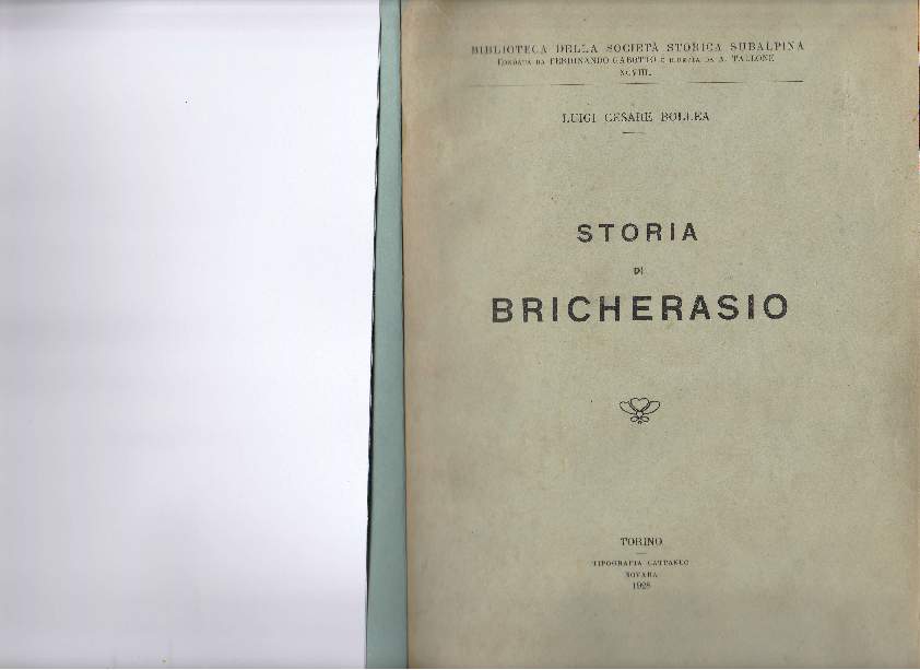 "Poche altre terre possono vantare un simile passato storico, che i suoi figli illustri resero ancora più glorioso con grandi imprese guerresche". L'insigne storico piemontese Luigi Cesare Bollea si riferisce così, nell'introduzione alla sua "Storia di Bricherasio" (1928), al paese delle sue origini. L'opera, frutto di vastissima e accurata ricerca archivistica, rappresenta una sterminata miniera di spunti e di riferimenti per tutti i testi successivi sulla storia del nostro Comune.